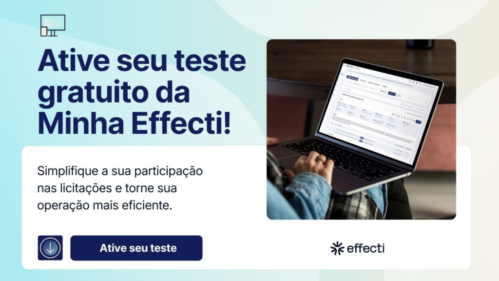 A dispensa eletrônica faz parte da Nova Lei de Licitações. Teste a plataforma Effecti e veja como acompanhar essas oportunidades com mais controle.