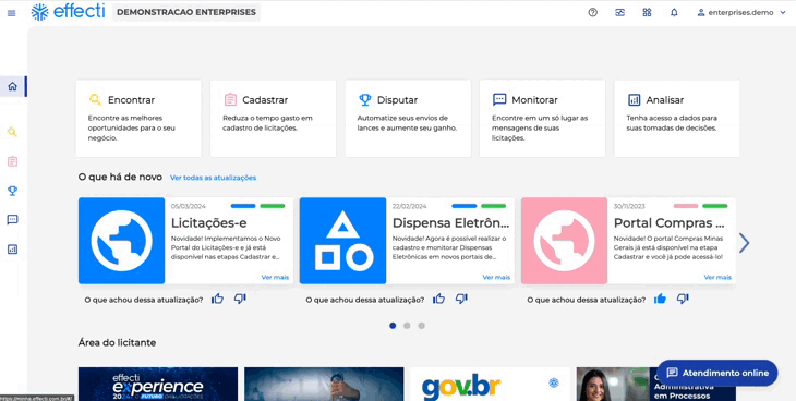 Com funcionalidades intuitivas, a plataforma Minha Effecti coloca a tecnologia a serviço da eficiência, ajudando você a se destacar nas licitações eletrônicas.