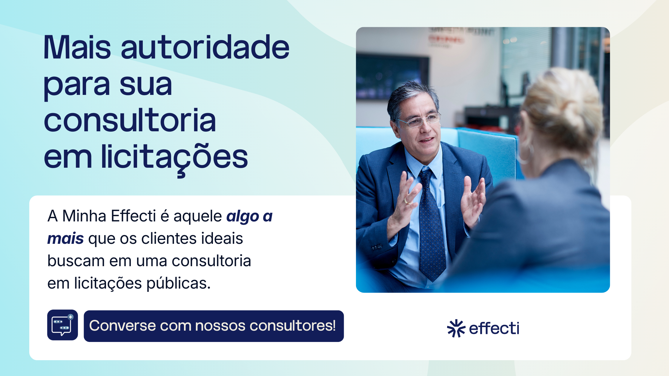 - Use a ferramenta Minha Effecti para buscar editais relacionados ao segmento do cliente. Filtre por data de publicação ou prazo de envio de propostas para entender melhor o mercado dele.
