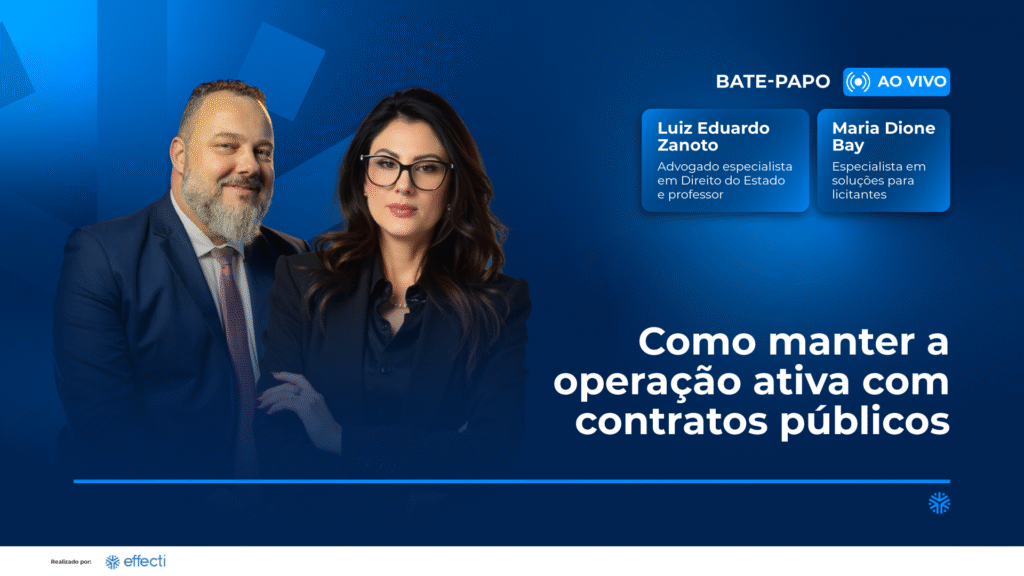 Esse foi o tema da live “Como manter a operação ativa com contratos públicos”, apresentada pela Maria Bay, especialista em soluções exponenciais para licitações da Effecti, e Luiz Eduardo Zanoto, advogado e especialista em licitações públicas. Confira os principais tópicos abordados nesse evento.