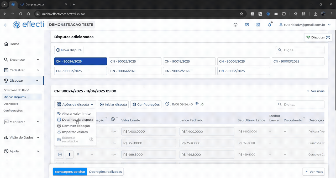 Minha Effecti é a plataforma para licitantes mais completa do mercado e centraliza editais, propostas e disputas de clientes diversos em um só lugar.