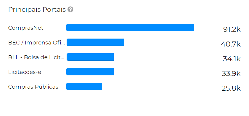 Aqui apresentamos a quantidade total de licitações disponíveis para pesquisa na ferramenta Pesquisar. Ou seja, são todas as licitações disponíveis em nosso banco de dados – que incluem as licitações publicadas nos últimos 6 meses.