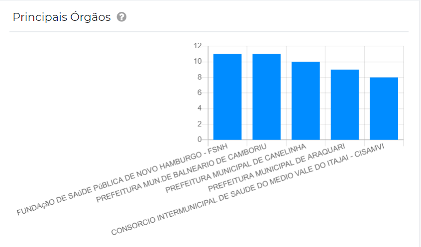 Relação dos órgãos com maior quantidade de propostas enviadas pelo usuário.