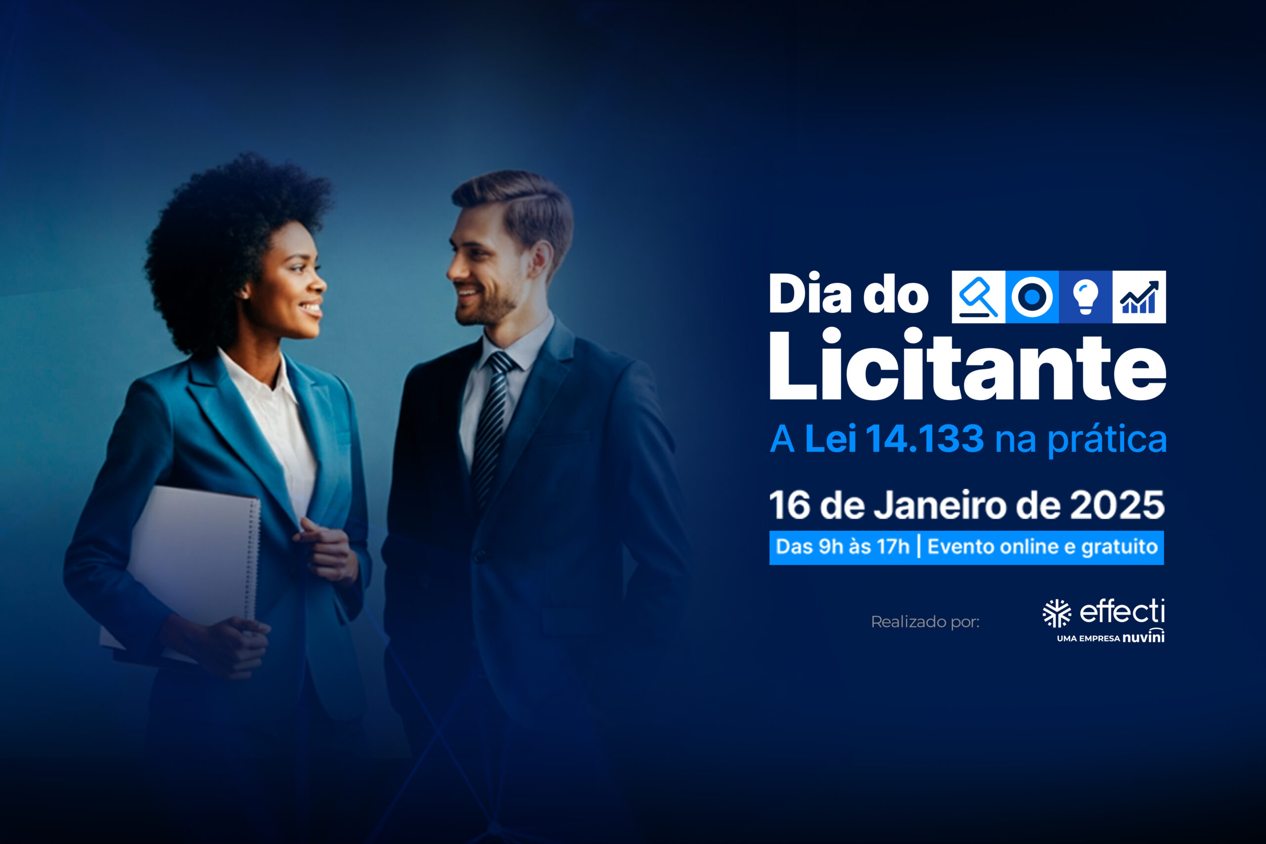 No dia 16 de janeiro de 2025, a partir das 9h, participe do evento online e gratuito que promete transformar sua percepção sobre o universo das licitações. Com o tema central “A Lei 14.133/2021 na prática: caminhos e experiências para empresas licitantes e fornecedores”, o encontro envolve debates fundamentais para contribuições sua atuação no mercado.