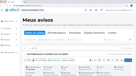 A Minha Effecti mantém sua equipe conectada às movimentações sempre que o pregoeiro interagir. Sem mais perda de convocação.